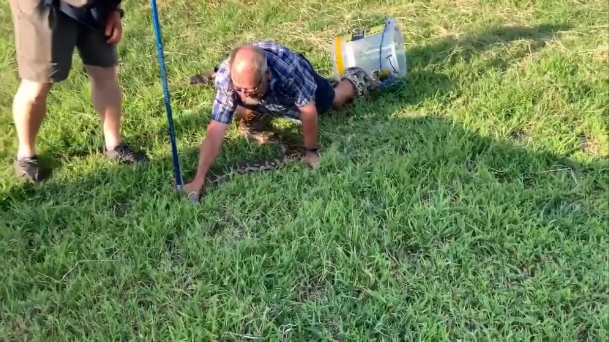 Zuid-Afrikaanse professional heeft de nodige moeite om een python te vangen