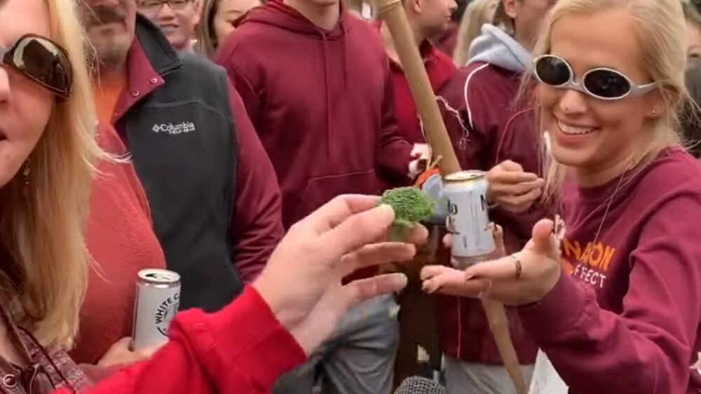 Moet huwelijksmateriaal zijn, dit. Deze dame werd een paar maanden geleden geïnterviewd en ze blijkt nogal van sport en van broccoli te houden. Oh, en van zuipen waarschijnlijk. Gokje.