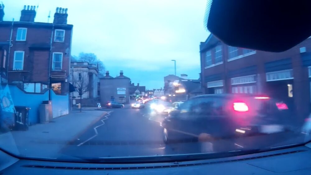 Vader legt zijn koter uit wat karma is als hij wordt afgesneden door een tokkiechauffeur