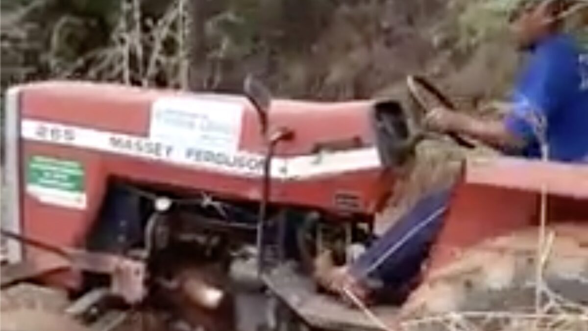 Braziliaanse boer heeft moeite om zijn trekker onder controle te houden Fails