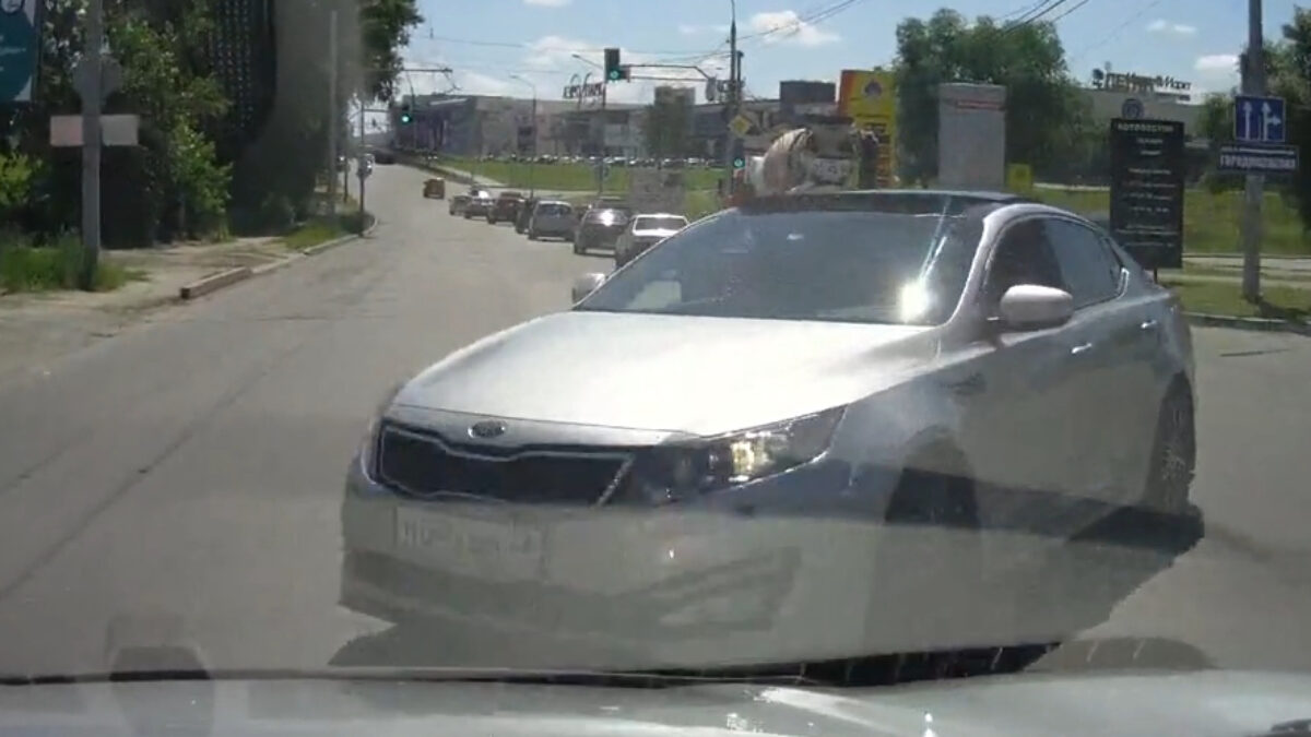 Overmoedige file-inhaler maakt van dichtbij kennis met een auto van rechts