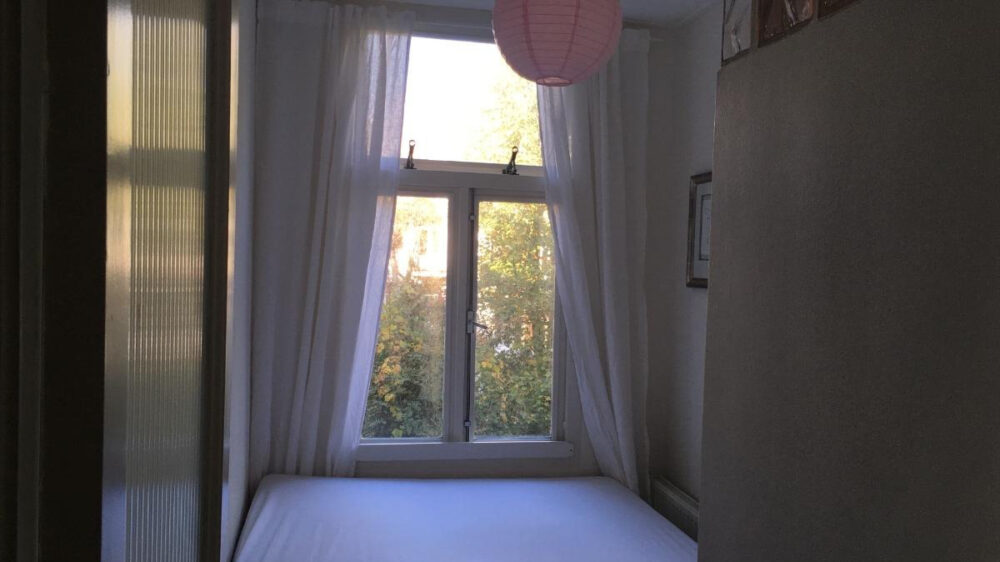 Zo moet je overdag eigenlijk wegwezen want dan werkt de verhuurder thuis. Oh, en haar zoon van 23 woont er ook, maar die gaat dan wel in de babykamer slapen. Klinkt als een buitenkansje!
