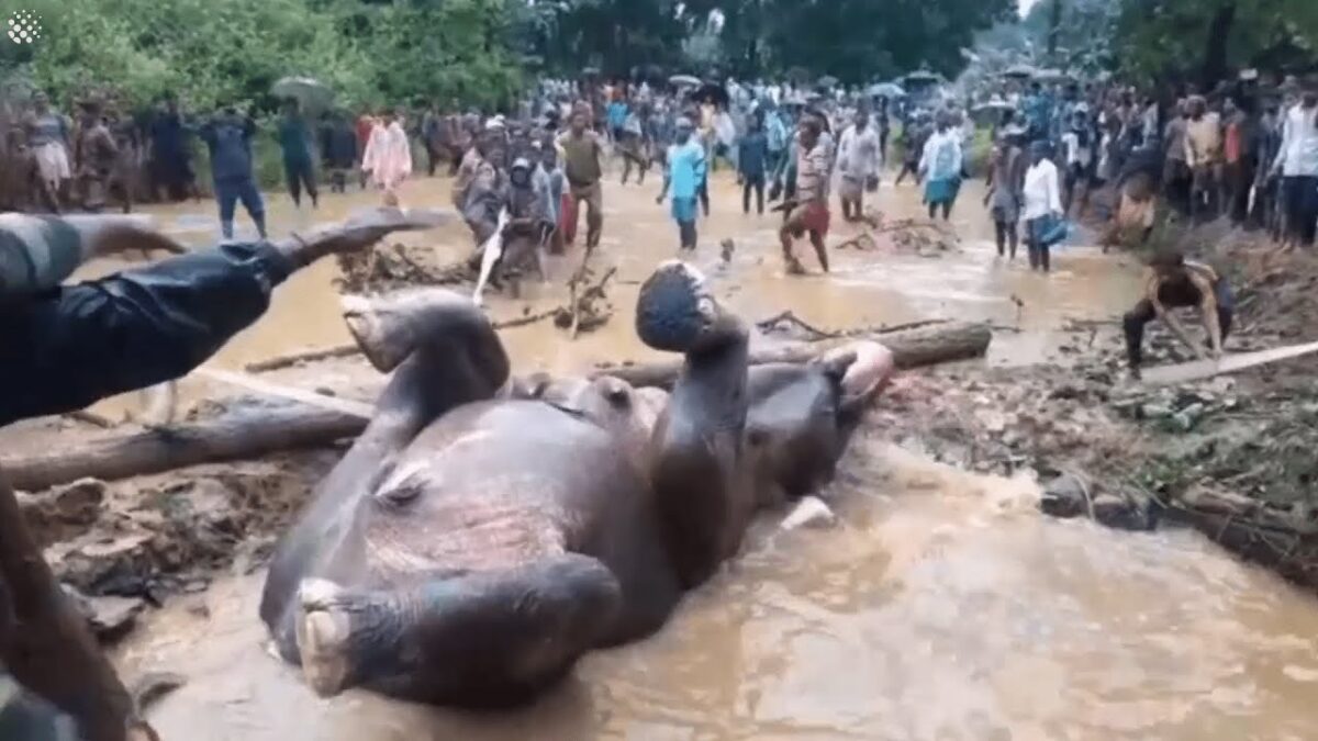 Miljoenmiljard Indiërs redden olifant van de verdrinkingsdood door hem uit een put te trekken