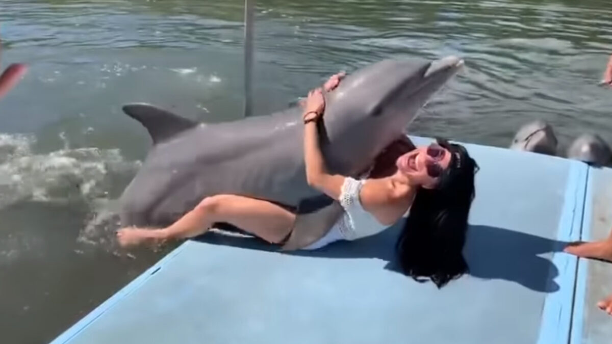 Vrolijke dame wordt aangerand door hitsige dolfijn
