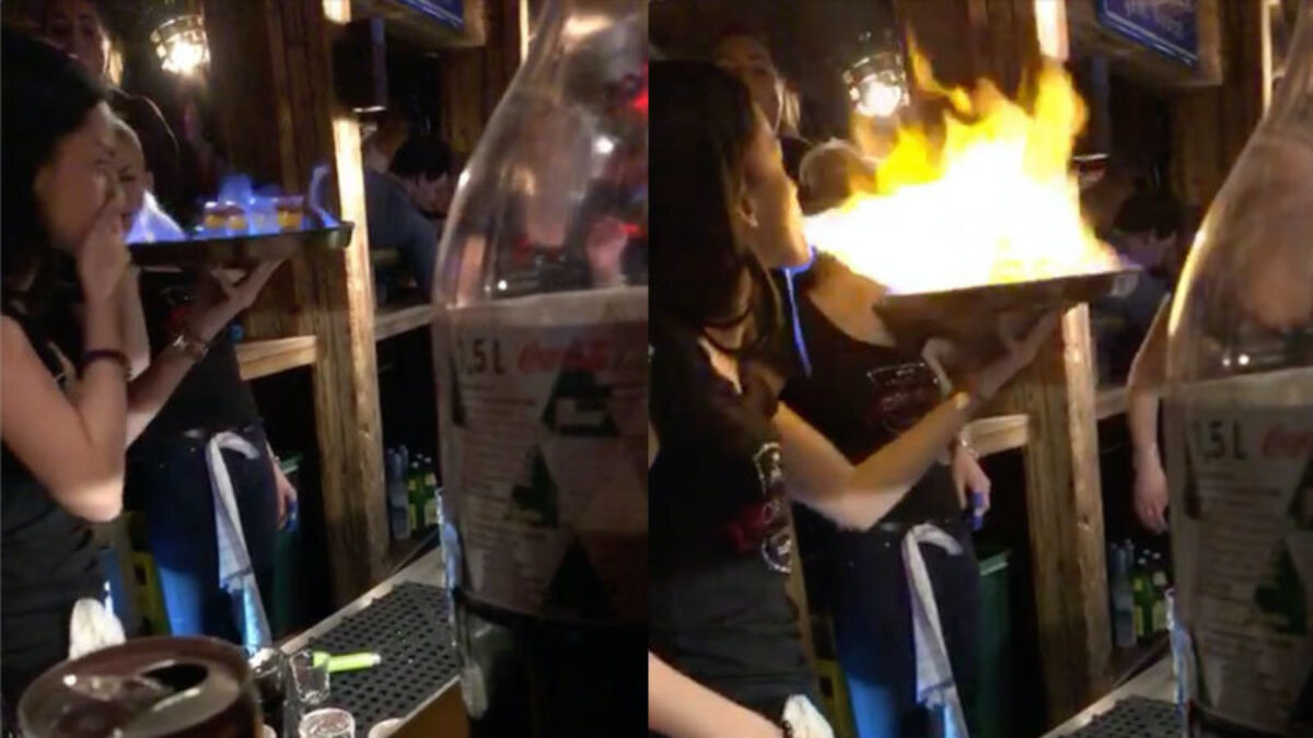 Een beetje spektakel achter de bar kan een leuke toevoeging zijn aan je avondje stappen, maar dan is het wel handig dat de desbetreffende dame het vuurspuwen enigszins onder de knie heeft.