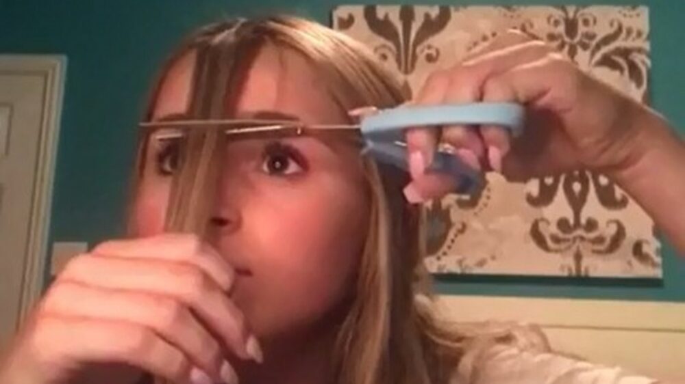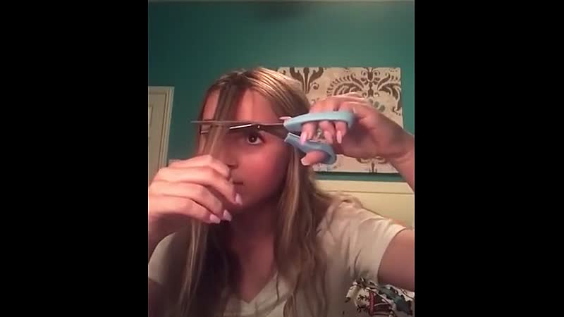 Meisje besluit zelf wel even d'r pony te knippen Fails