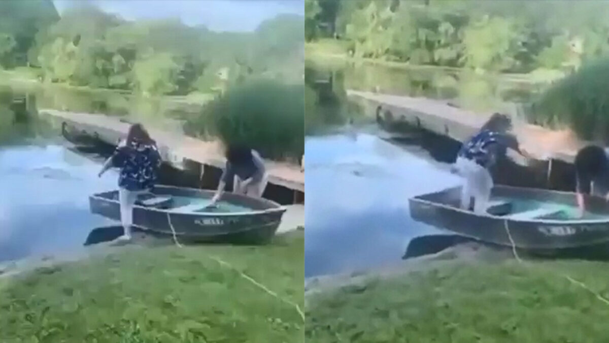 Tante doet een poging om elegant in het bootje te stappen Fails