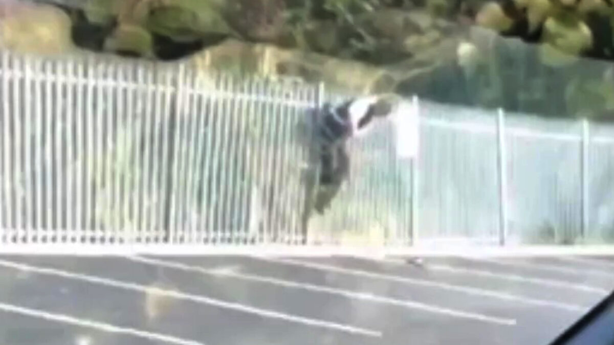 Politieagent hangt hulpeloos aan een hek en wordt niet gered