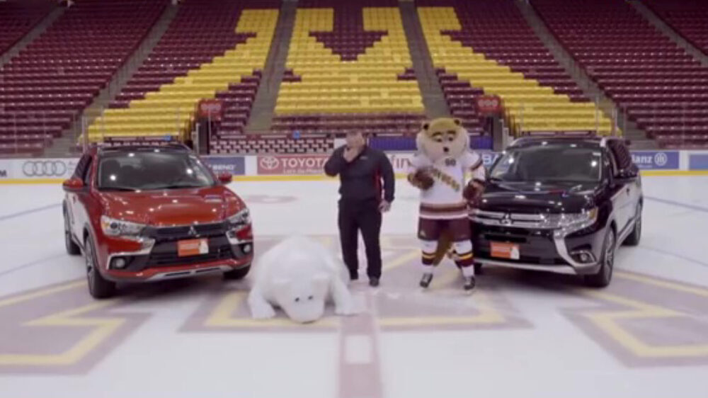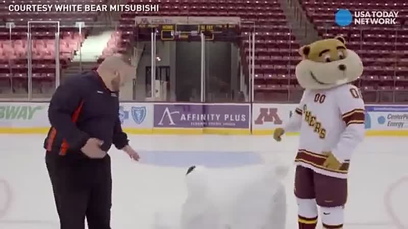 Supergrappig natuurlijk, iemand in een ijsbeerkostuum op het ijs, maar wellicht had de ontwerper iets van antislip onder de poten kunnen bevestigen. De opnames duurden iets langer dan gepland...