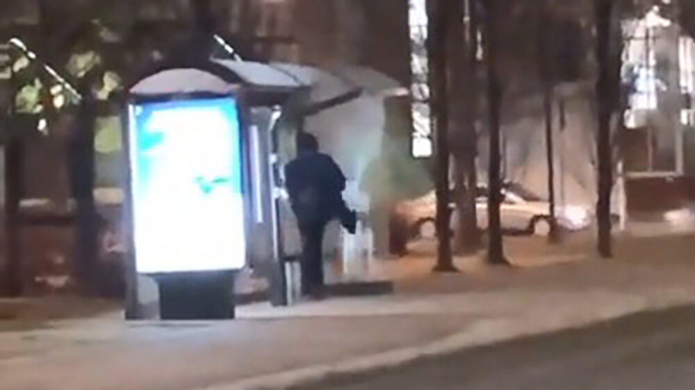 Ruziezoekend drankorgel sloopt bushokje met een achterwaartse karatetrap