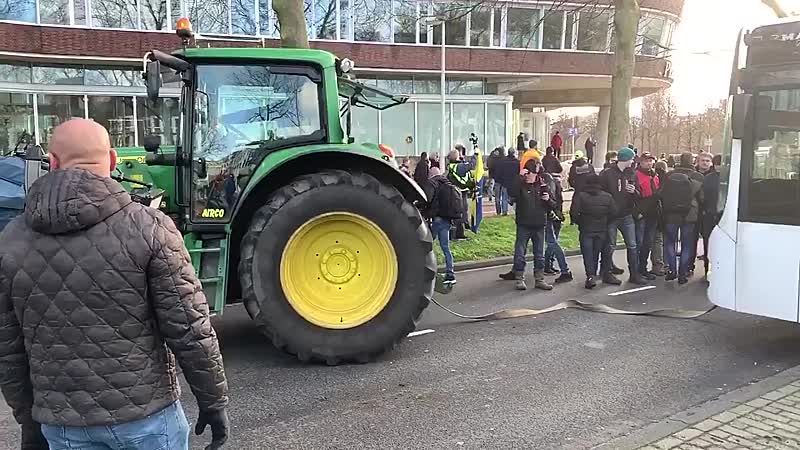 Na een middagje trekkerrijden in de grote stad wilden ze nog wat stickers plakken op het gebouw van het Ministerie van Landbouw, maar daar was de politie het niet helemaal mee eens. De Bezuidenhoutseweg is inmiddels hermetisch afgesloten en dus besloten ze te voet verder te gaan, maar dat leidt tot boze boeren en dus ook aanhoudingen.