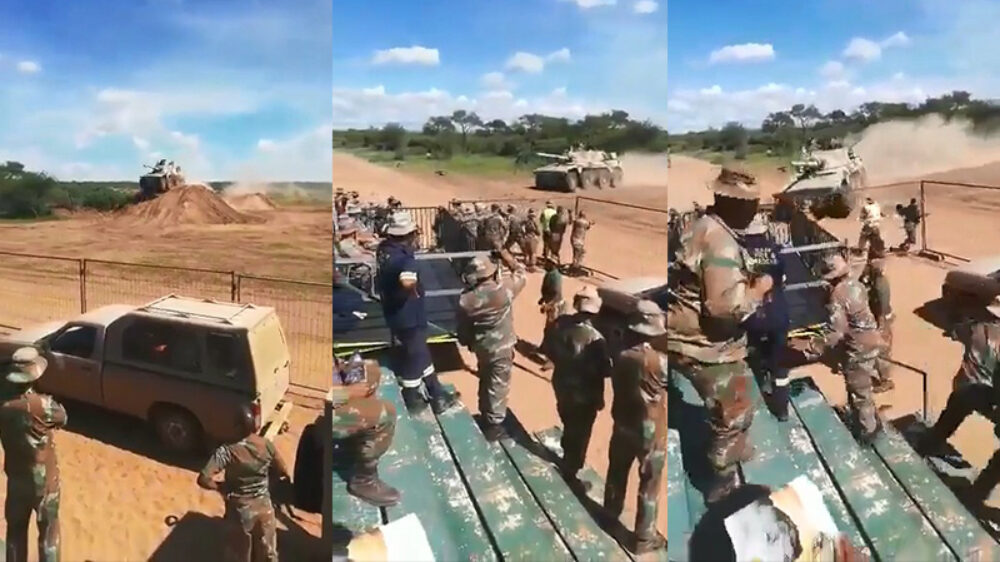 Toeschouwers krijgen het benauwd als tankbestuurder het bochtje iets té ruim neemt