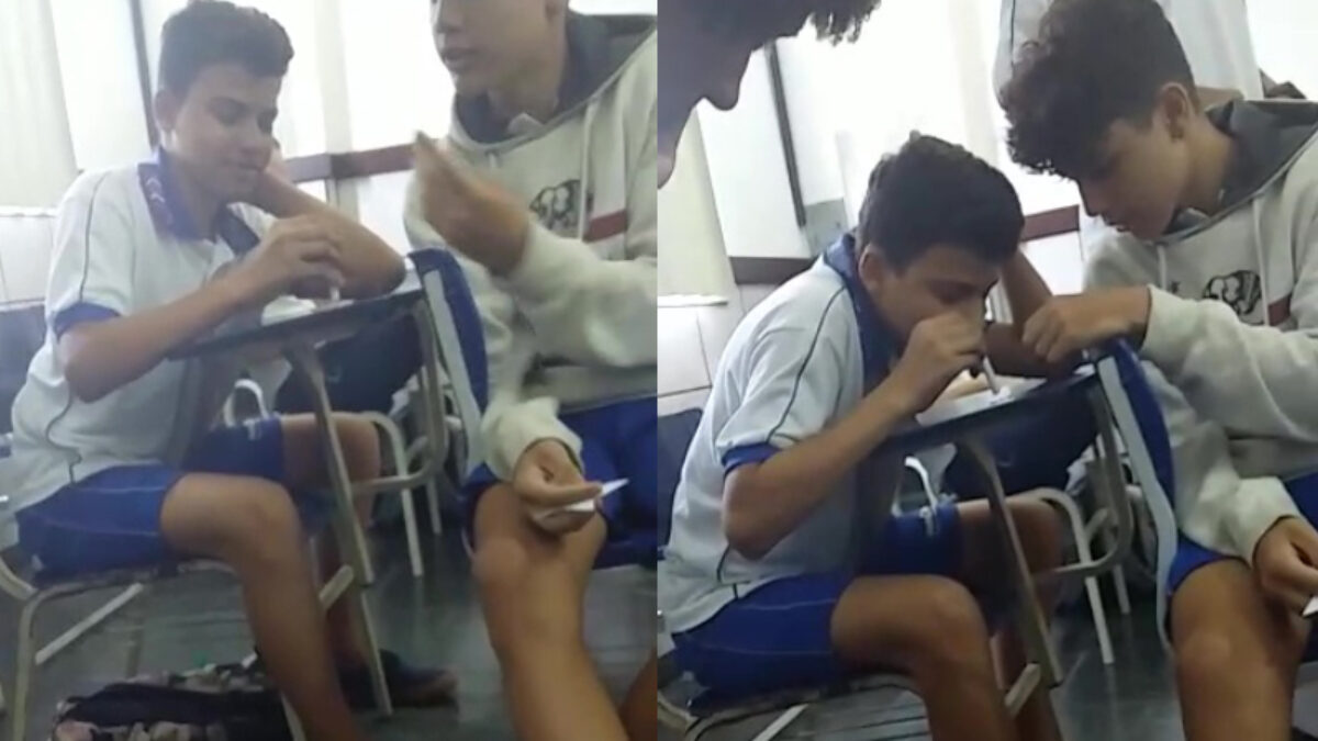 Zo'n dag met lessen is ook maar saai en dan heb je moeite met wakker blijven. Snappen we. Inkakken is bijpakken, maar om dat nou in je klaslokaal te doen....?