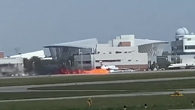 Vliegtuig in Daytona maakt vlammende landing dankzij storing in het landingsgestel