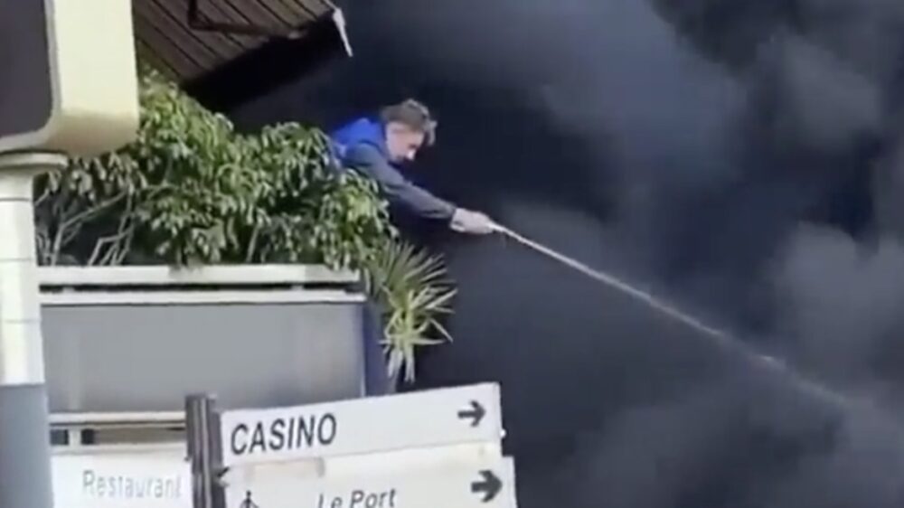 De buurman helpt wel even mee om een brandede Ferrari te blussen