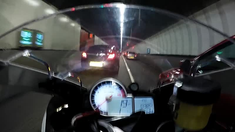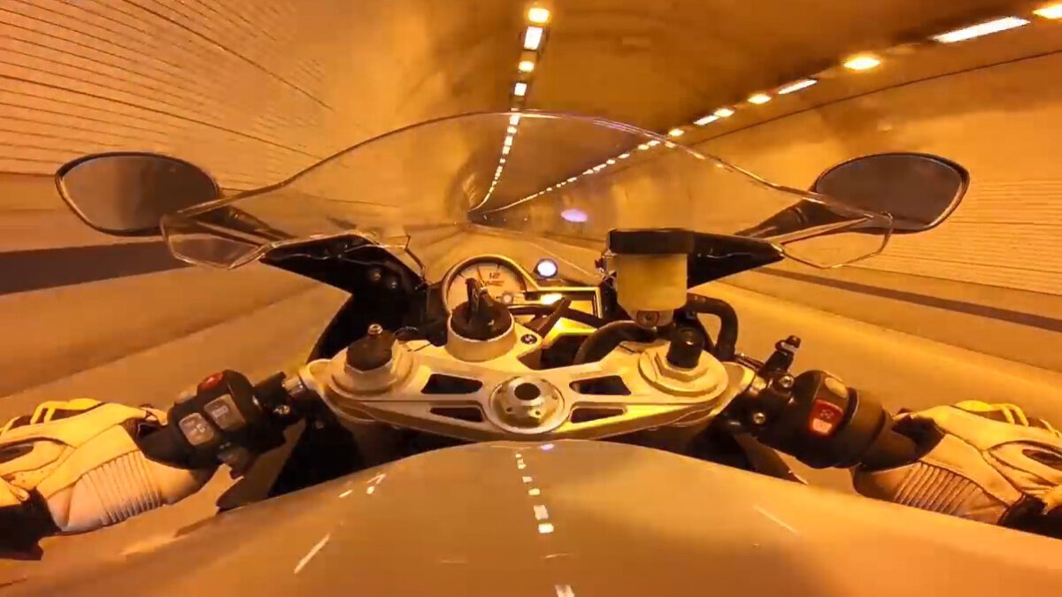 Motorrijder jankt met zijn BMW 1000RR vol door een kilometerslange tunnel