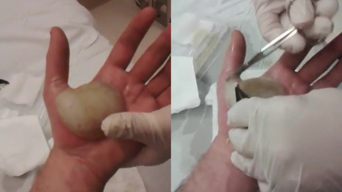 Om een blaar als deze op je hand te krijgen zul je toch een paar dagen moeten marathonrukken, maar het verwijderen van zo'n ding is een stuk sneller gebeurd. Al zijn het niet echt beelden waar je maag rustiger van wordt...