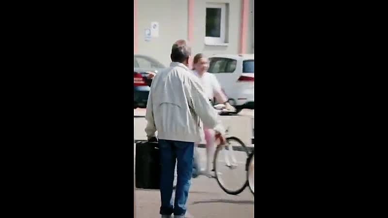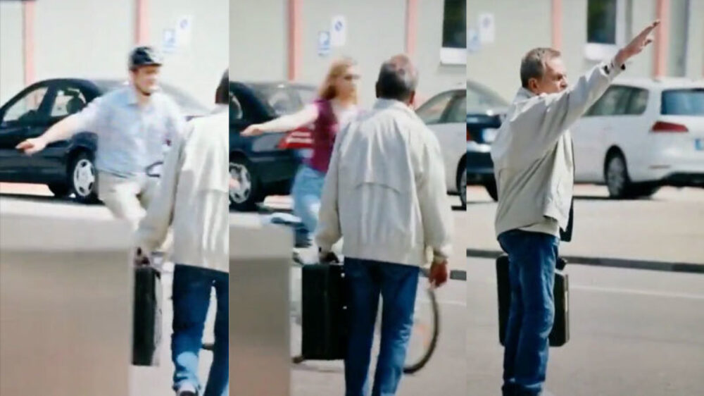Oude tijden herleven als Duitse opa een aantal fietsers hun hand ziet uitsteken Fun