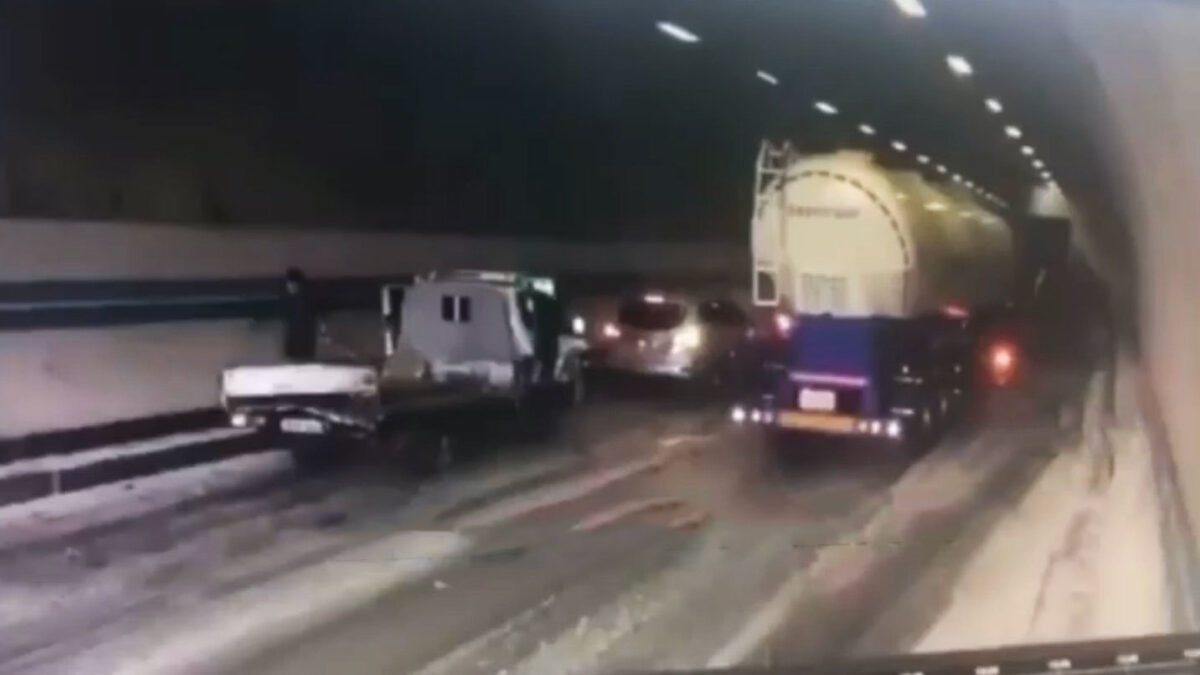 File in Zuid-Koreaanse tunnel zorgt voor een gigantische kettingbotsing