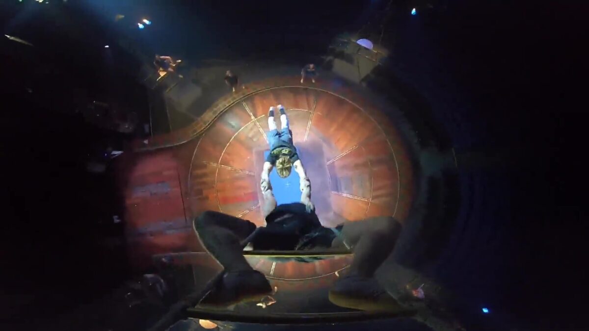 Voordat je daadwerkelijk tijdens een voorstelling aan een trapeze gaat hangen moet je natuurlijk flink trainen. Dat zo'n act niet geschikt is voor mensen met hoogtevrees bewijst deze POV, of zijn wij de enigen met zweethandjes?