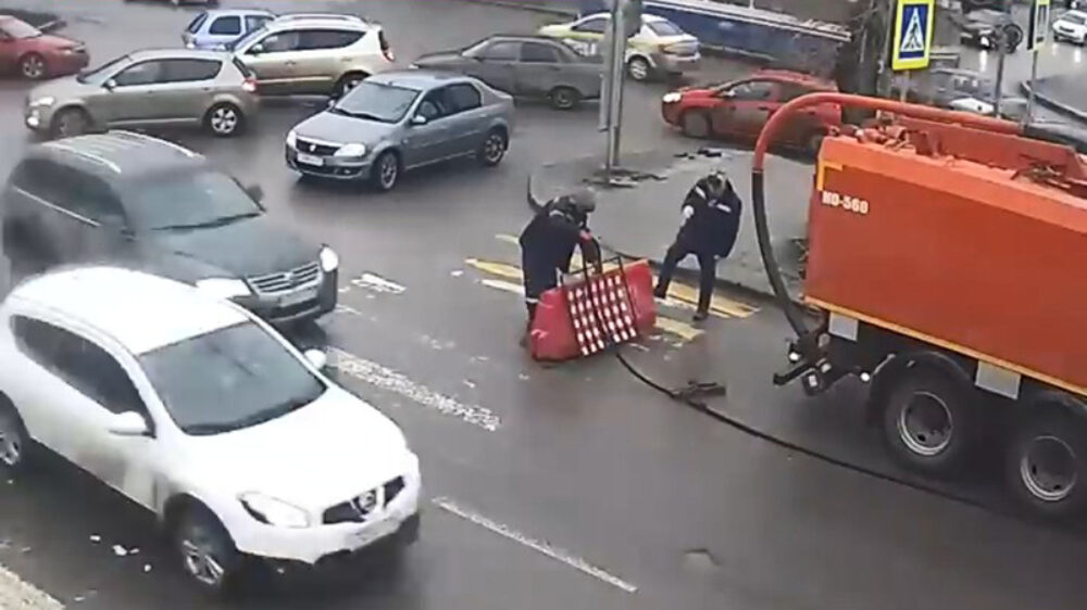 Ook een kapotte putdeksel wordt in Rusland op geheel eigen wijze "gemaakt"