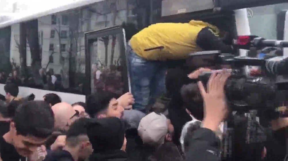 Honderden Syrische vluchtelingen bestormen bus in Istanboel om richting de grens te gaan