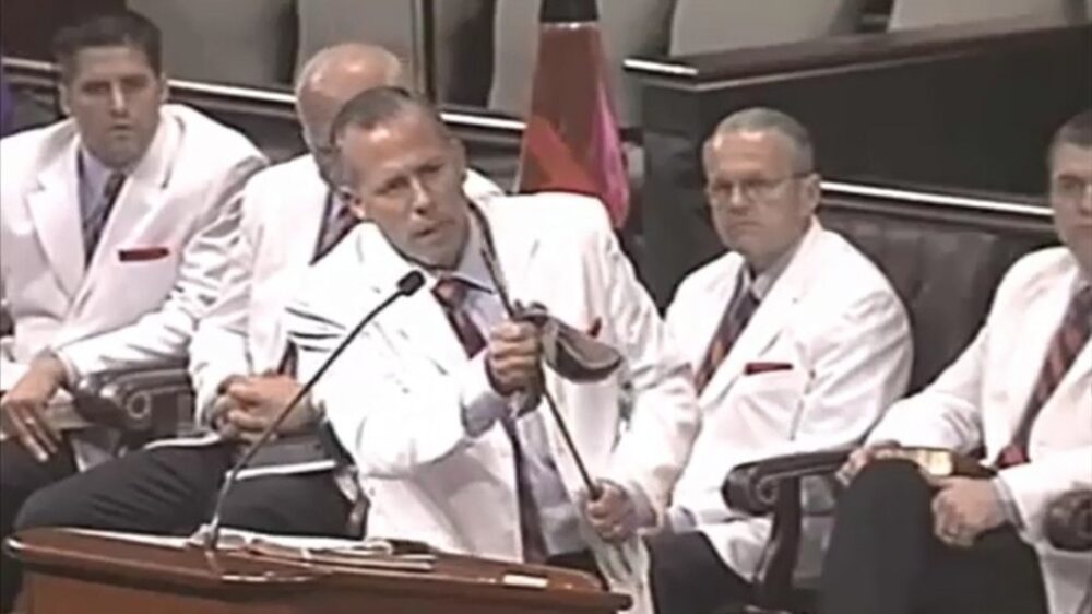 Predikant Jack Schaap demonstreert hoe je je 'schacht' moet polijsten