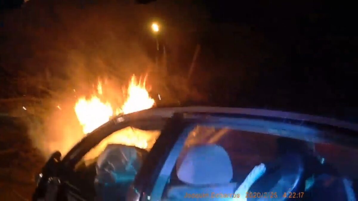 Bodycam laat zien hoe agenten een vrouw uit een brandende auto trekken