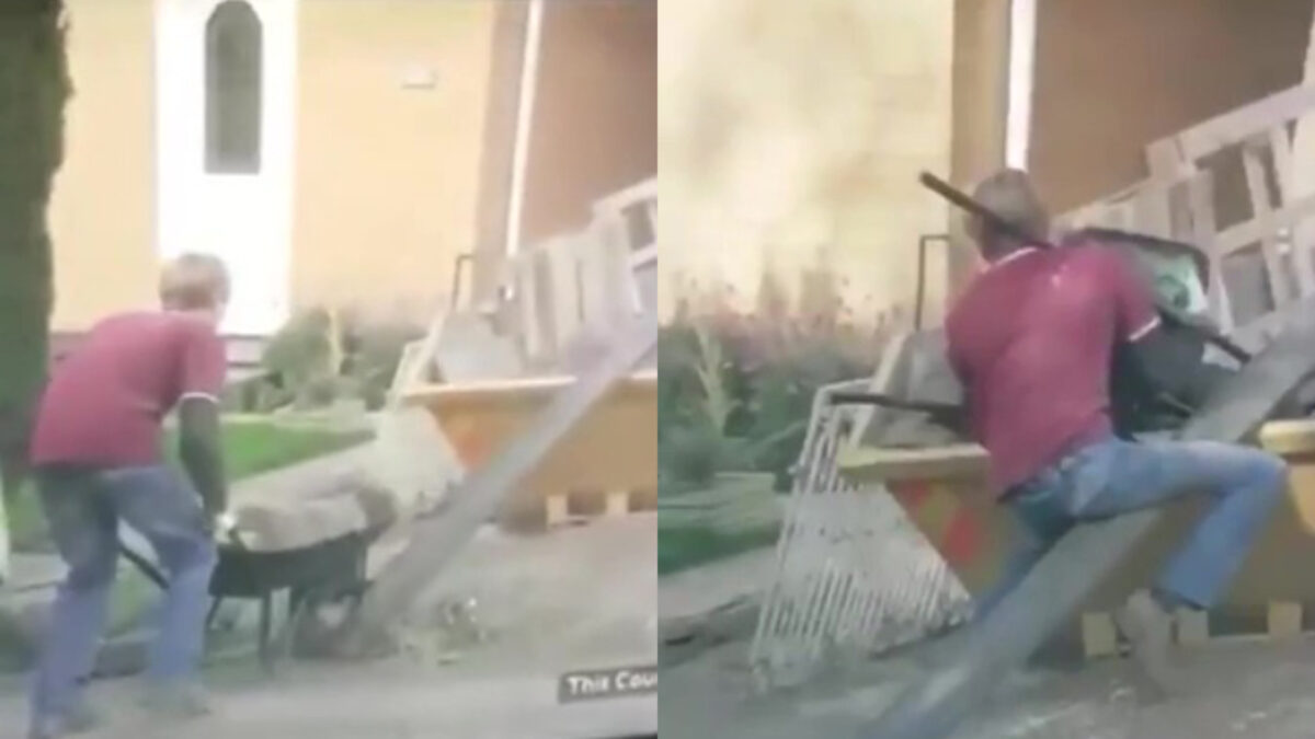 Natuurlijk wil je die nieuwe stagiair op de bouw ook wat te doen geven, dus hier knul, ga jij maar even die volle kruiwagen legen in de container. Op momenten als dit weet je direct of deze jongeman geschikt is of niet...