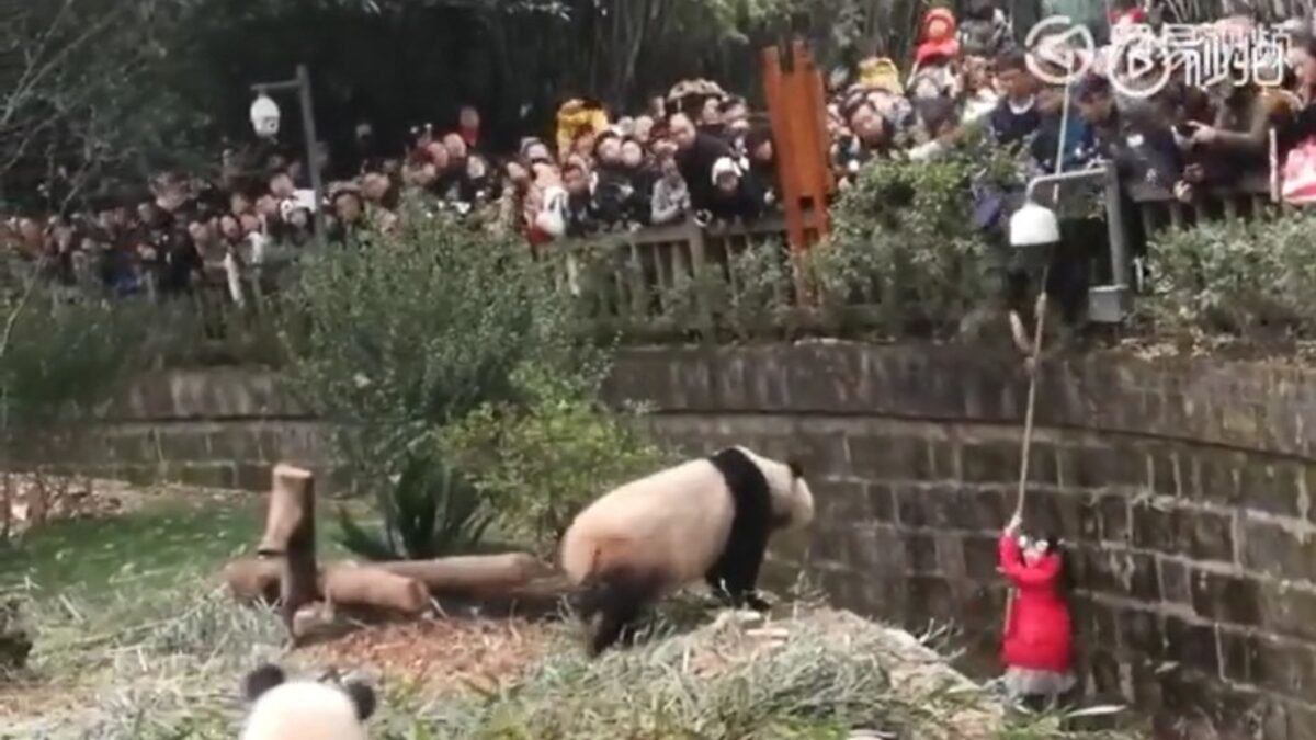 Chinees meisje valt in pandaverblijf maar wordt gelukkig gered door beveiliger