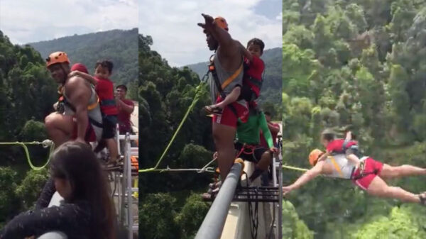Avontuurlijke vader neemt zoon mee voor zijn eerste bungeejump