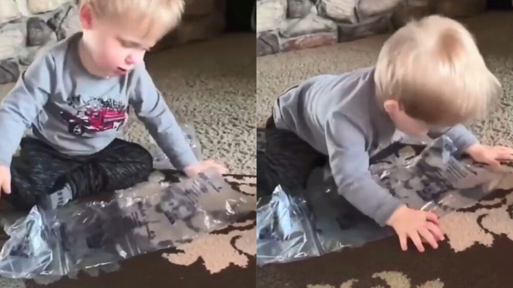 Koter heeft zo zijn eigen manier gevonden om noppenfolie te pletten