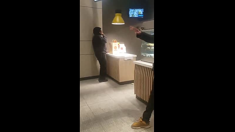 Eenarmige bandiet laat zijn fastfood geen moment los als hij ruzie krijgt met deze 'thug'