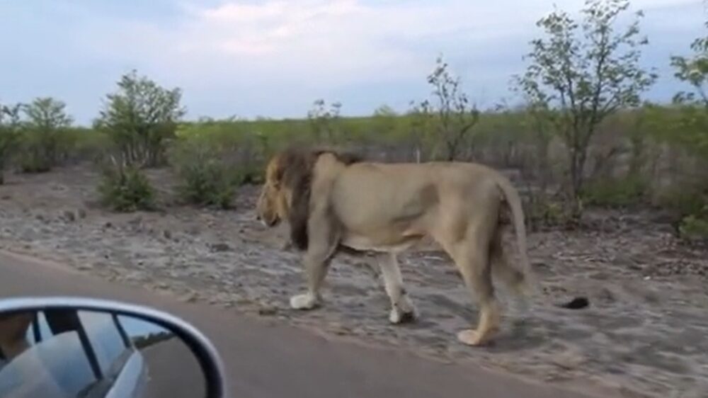 Tijdens het filmen in het Kruger National Park in Zuid-Afrika leerde een groepje toeristen in deze oude doos dat ze de volgende keer toch maar beter het autoraampje omhoog kunnen laten.