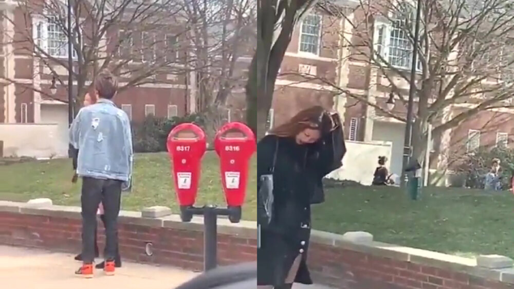 Een relatie verbreken is vaak pijnlijk, en deze filmer legde zo'n tafereel toevallig vast. Het geheel lijkt zo uit een romantische dramafilm te komen, maar met een heerlijk eind. Wait for it...