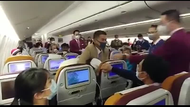 Als je, met de huidige situatie rondom het Coronavirus, in een vliegtuig moet hoesten dan kun je dat beter onderdrukken. Voordat je het weet lig je in een houdgreep en word je het vliegtuig uitgesodemieterd, hetgeen de crew en passagiers van Thai Airways hier demonstreren.
