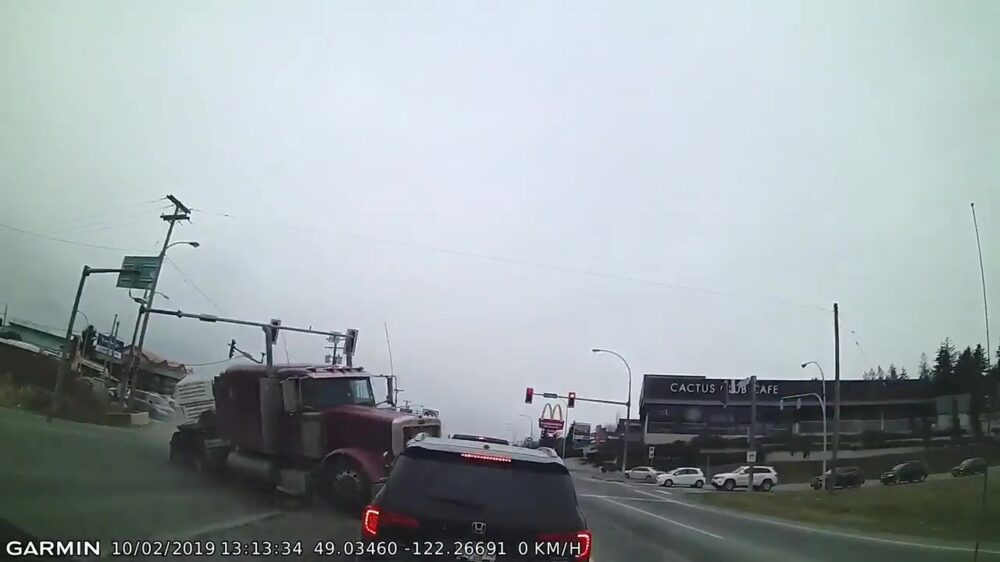 De vrachtwagen werd geraakt door een aanstormende pick-up waardoor de chauffeur de macht over het stuur verloor.