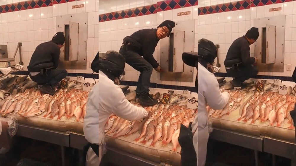 In deze winkel zijn ze op de visafdeling niet zo van de hygiëne