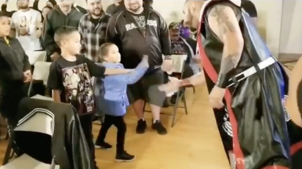 Worstelaar spuugt naar kind maar gelukkig weet papa wel hoe je zoiets corrigeert