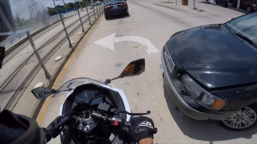 Motorrijder wordt op de rails gebeukt dankzij een 'onhandige' automobilist die hem een tikkie geeft