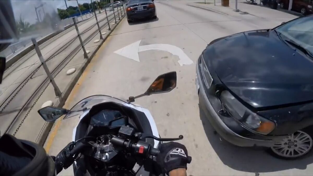 Motorrijder wordt op de rails gebeukt dankzij een 'onhandige' automobilist die hem een tikkie geeft Verkeer