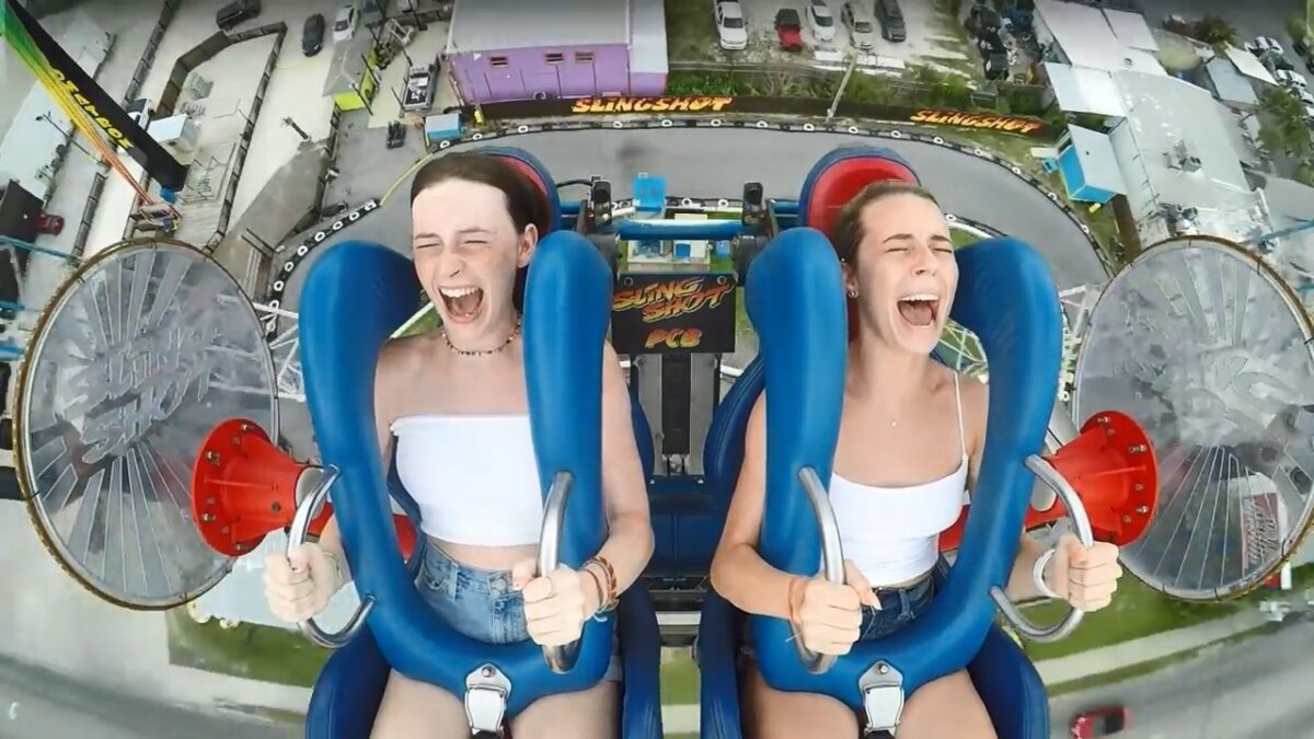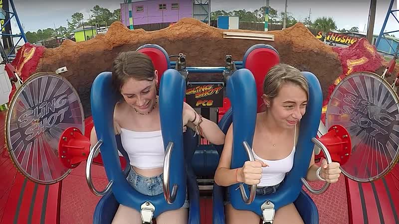 Blondine krijgt niet veel mee van haar ritje in de slingshot als ze steeds nokkie gaat