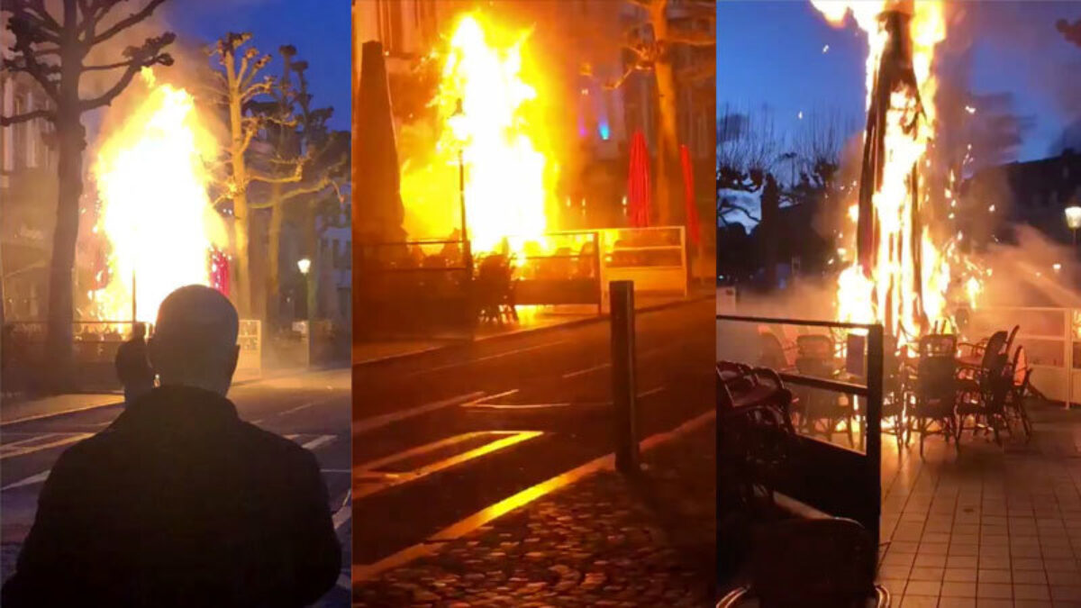Parasols in Maastricht in de hens als personeel de terrasverwarmers vergeet Fun