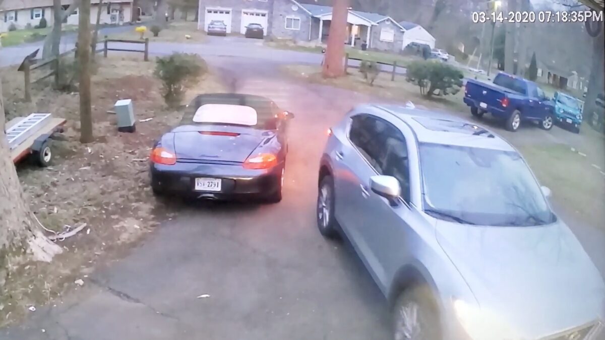 Naar verluidt heeft de eigenaar van de Porsche zijn hut aan een stelletje van een jaar of 30 verhuurd en de dame in kwestie deed hier een poging om haar auto ongeschonden uit te parkeren.