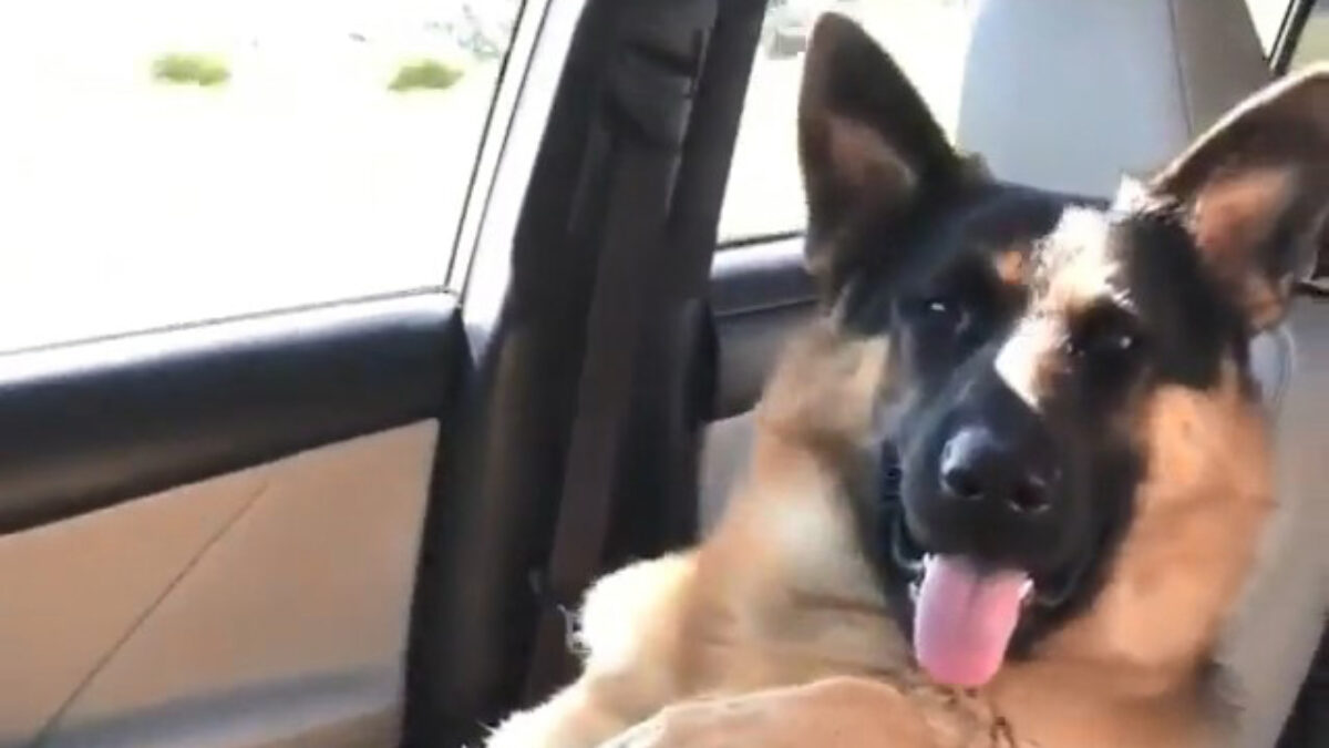 Hond zit supercomfortabel tijdens een ontspannen roadtripje met zijn baasje Dieren