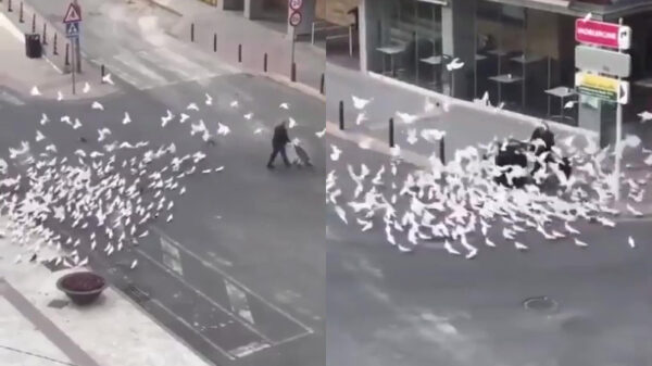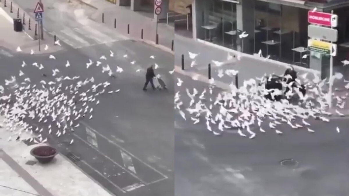 Als je als vogel voor je voedsel afhankelijk bent van wat andere mensen op straat achterlaten dan heb je in tijden van lockdown wel een klein probleem. Momenteel gaan de gevleugelde vreetzakken dan ook actief achter hun eten aan en vallen ze supermarktklanten lastig.
