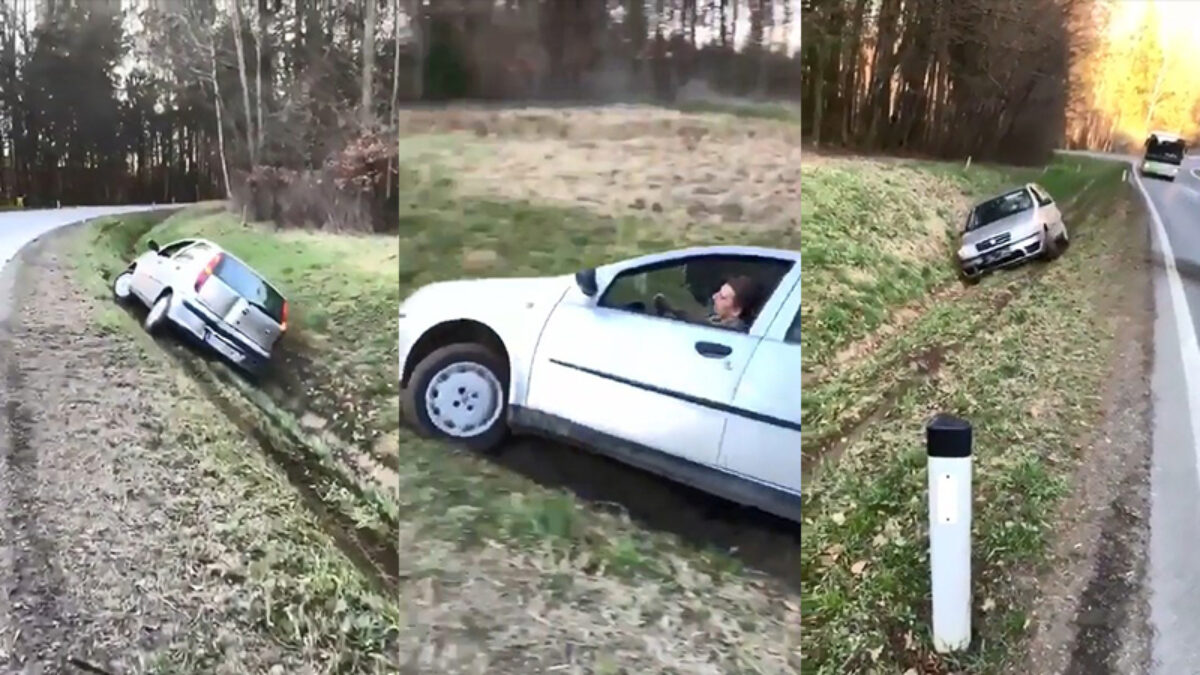 Oostenrijker houdt een spannende bermrace als hij zijn Fiat Punto er niet uit krijgt Verkeer