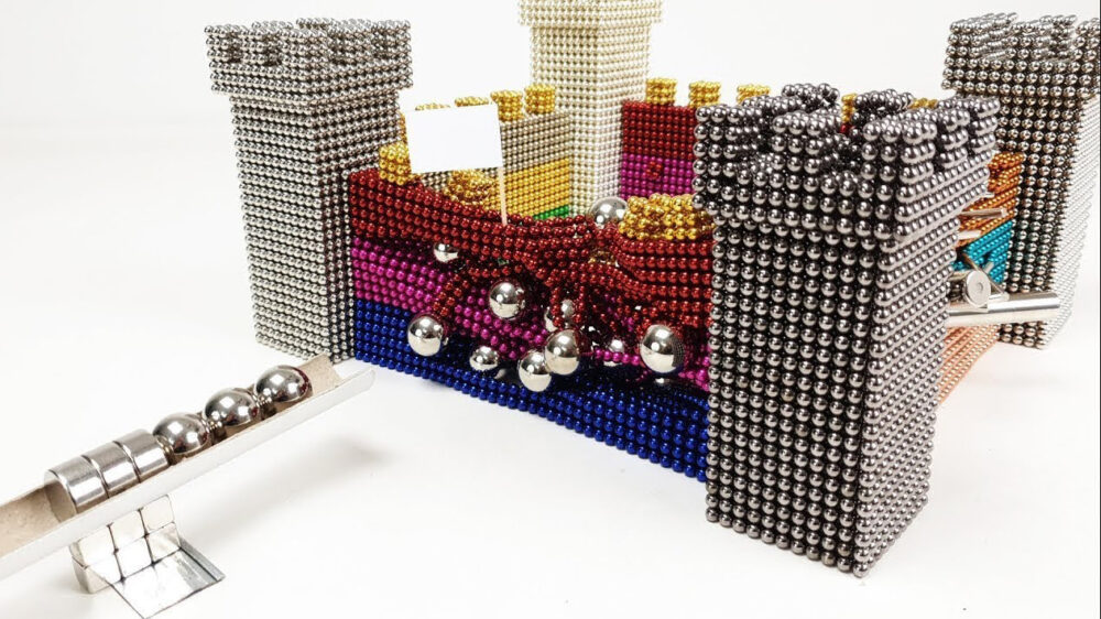 Hobby Bob verveelt zich niet en schiet met magnetische ballen op een magneettoren