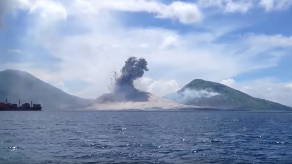 De vulkaanuitbarsting van de Mount Tavurvur zorgt voor een krachtige schokgolf