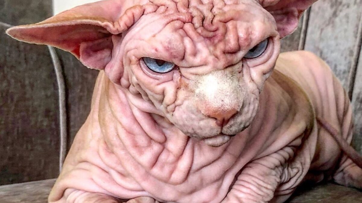 Even kennismaken: Xherdan, de naakte poes. Na het overlijden van Grumpy Cat in 2019 zal er toch eens een plaatsvervanger op moeten staan en die eer lijkt aan Xherdan te zijn. Zijn chagrijnige bakkes, zijn rimpelige huid en het feit dat het beest zo kaal als een biljartbal is... Onze stem heeft 'ie, maar wij zijn dan ook erg fan van kale poezen.